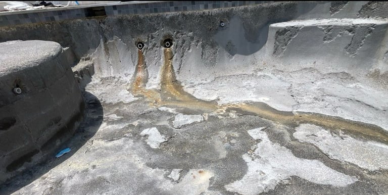Waterproofing prevents water from seeping through the concrete shell, which can cause plaster to delaminate, bubble, or discolor over time. By creating a barrier beneath the plaster, it stops moisture migration, reduces efflorescence, and protects against chemical damage. This helps the plaster bond better, last longer, and maintain a smoother, more durable finish.